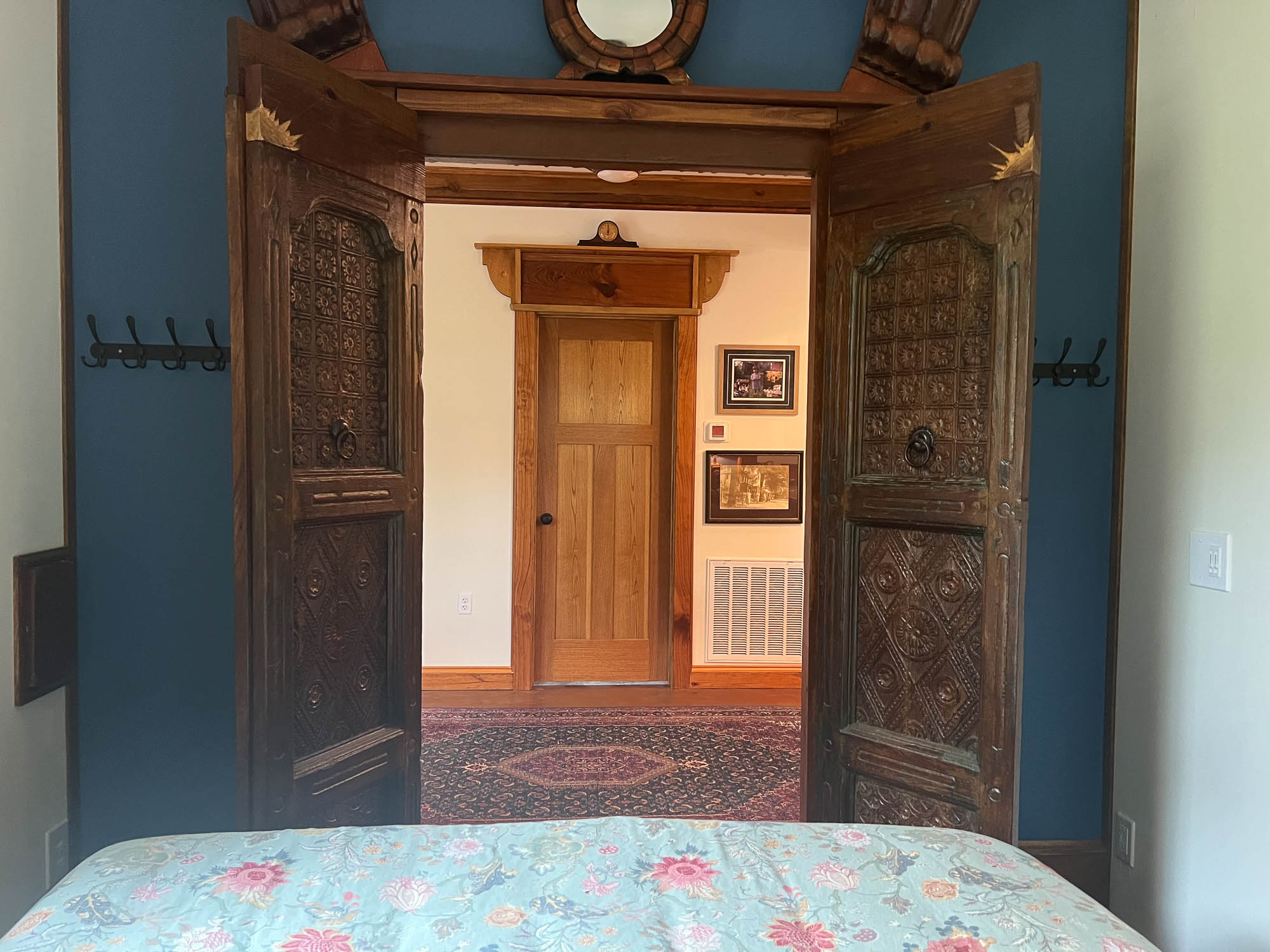The Casita can accommodate two guests in the bedroom, which has a queen-sized bed. One additional guest can be provided with a 4” folding mattress. If there are more guests, up to four more can be accommodated in the Studio, which is on the ground floor.